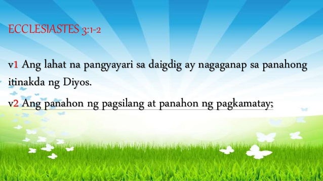 Sa madaling salita kapag ikaw ay namatay para ka lang natutulog. Bible verse tungkol sa buhay at kamatayan. Sabi ni Hesus Sapagkat gayon na lamang ang pag-ibig ng Diyos sa sanlibutan na ibinigay niya ang kanyang tanging Anak upang ang sinumang sa kanyay sumampalataya ay huwag mapahamak kundi magkaroon ng buhay na walang hanggan Juan 316.