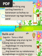 Magsalaysay ng sariling karanasan o karanasan ng iba na may kaugnayan sa salitang pagbabagong-buhay. Maiintindihan mo rin kung bakit mahirap bigyang katuturan kung sino ang tunay na Pilipino at bakit ibat ibang kultura ang ating kinagisnan. Sa kabilang banda ay nagbago rin ang takbo ng buhay.