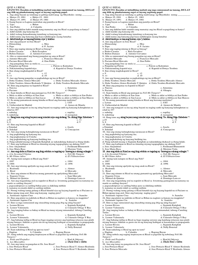 Pagsusulit Sa Buhay Ni Dr Jose Rizal Pdf