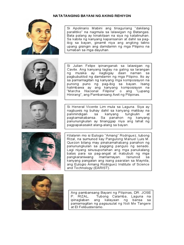 Batay sa kanila ang bayƔni ay matapang may matinding pag-ibig sa bayan at nagbubuwis ng buhay para dito. Save Save Ang Mga Bayani Sa Aking Lalawigan at Rehiyon For Later. Ang aking Bayani ay ang aking Magulang.