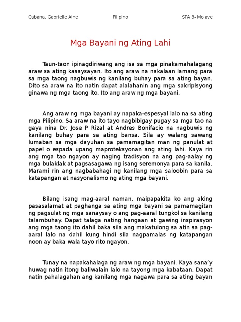 Ang Itinuring Kong Bayani Sa Aking Buhay Pdf