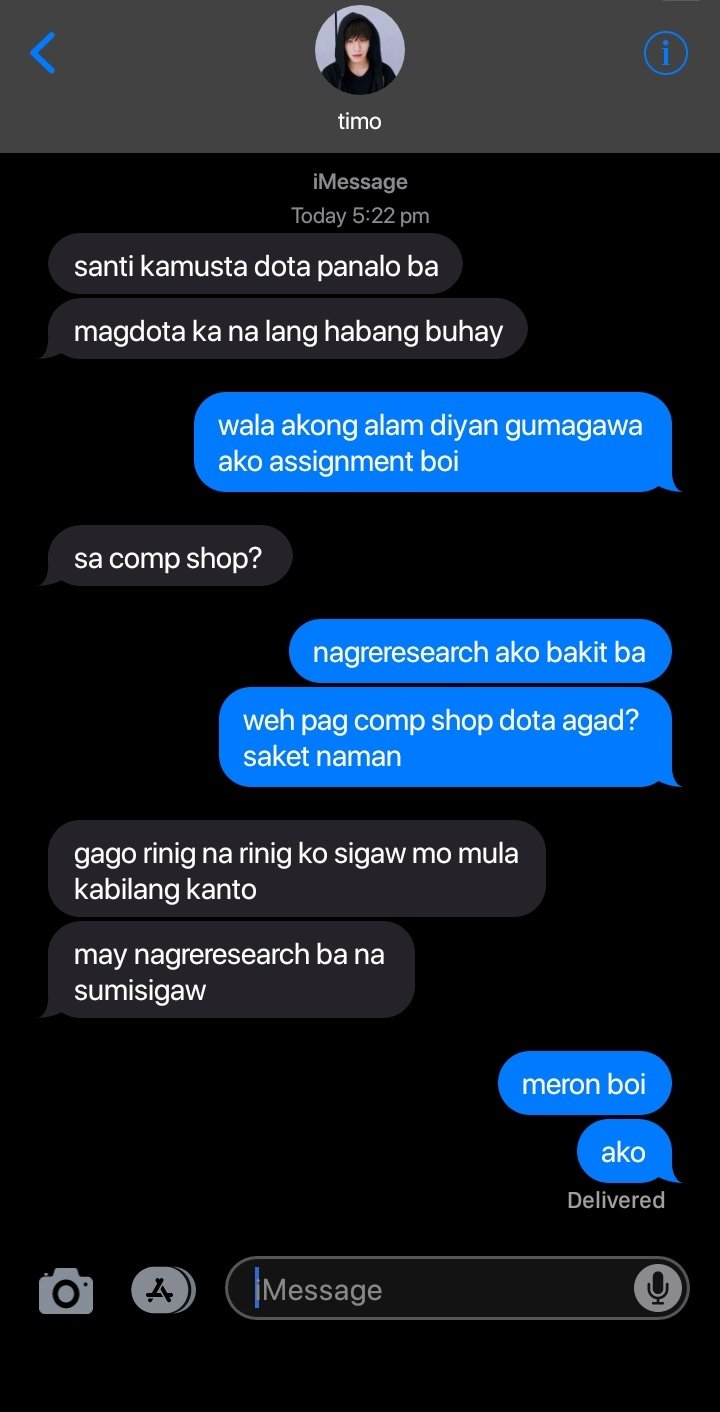 Dahil hindi ka mananalo kung tanga ang kausap mo. Hindi mo ako kilala hindi mo alam kung anong problema ang dumaan sa buhay ko at hindi mo alam kung gaano ito ka sakit. Yun bang gigising ako at ang aalalahanin ko lang ay yung mga assignments na hindi ko nagawa mga tests na hindi ko naipasa mga projects na hindi ko nasubmit at wala akong balak na isubmit.