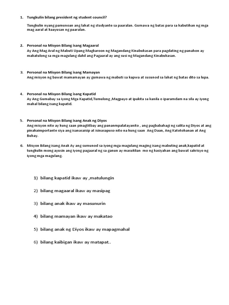 Mag pabibo agad sa first day of school recite agad para makilala ka ng prof mo. Bakit mahalaga na magkaroon ng personal na pahayag ng misyon sa buhay. School Western Mindanao State University - Zamboanga City.