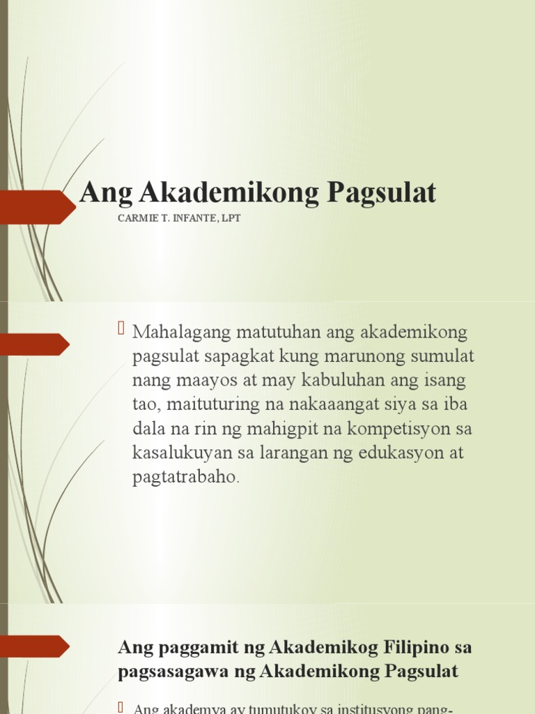 Bawat propesor ay may kanya-kanya ring ispesikasyon at preperensya sa kung paano ang pagsulat na kailangang. Akademikong Pagsulat - Kahulugan ng Pagsulat ng Akademik. Hasain ang iyong kasanayan sa akademikong sulatin.