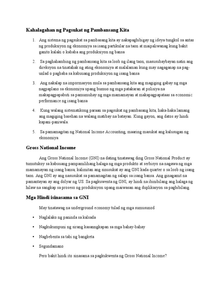 Kahalagahan Ng Pagsukat Ng Pambansang Kita Pdf