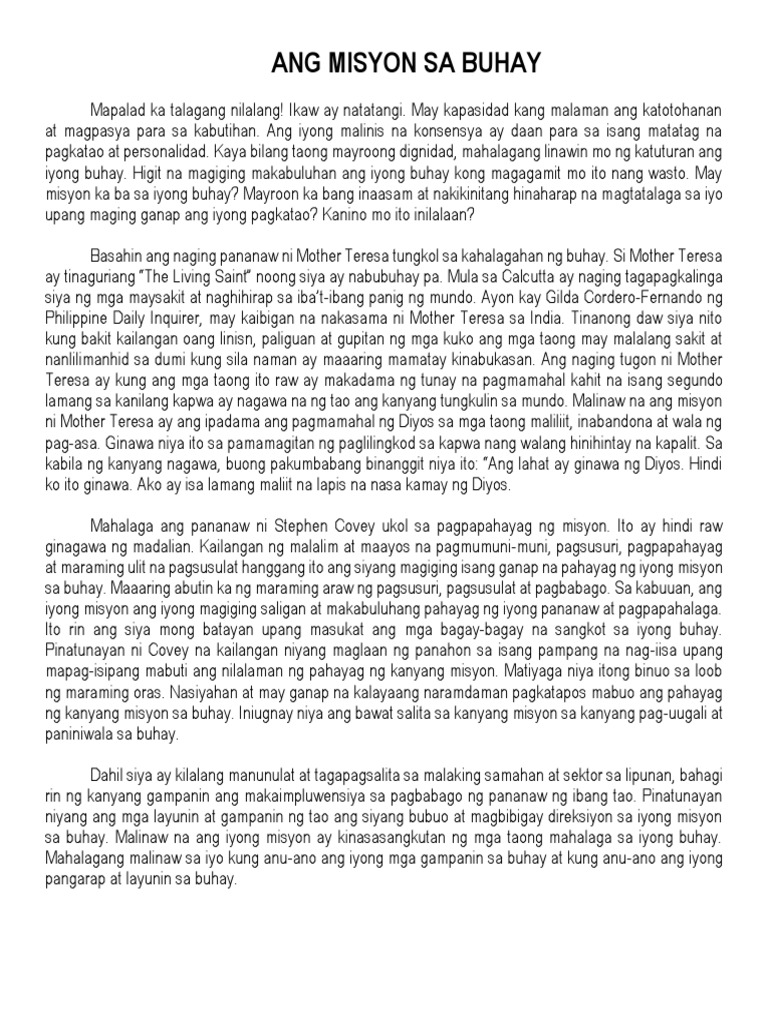 Fabian essay Ang sa ko essay misyon buhay social studies essay rubric essay in about 300 words on the artculturefestivals and rituals of sikkim essay on fit india movement 250 words essay of oligopoly ko sa misyon essay Ang buhay. Place your order by filling an order form. We are able Ang Misyon Ko Sa Buhay Essay to not only craft a paper for you from scratch but also to help you with the existing one.