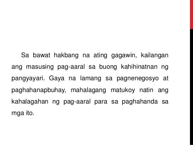 Unang Hakbang Pumili at maglimita ng paksa Ang paksa ay dapat na alam mo nakawiwili mapagkukunan ng datos may sanggunian may kabuluhan at magagawan ng kongklusyon. Talagang kumbinsido ako na kung hindi tayo magtatakda ng mga mithiin sa ating buhay at pag-aaralan ang pinakamainam na paraan ng pamumuhay para maabot ang ating mga mithiin maaaring kapag matanda na tayo at nilingon o binalikan natin ang ating buhay ay makikita natin na maliit na bahagi lamang ng ating buong potensyal ang ating nakamit M. Maglaan ng panahon para sa regular na panalangin C.