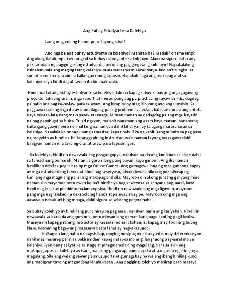 Maikling talumpati tungkol sa buhay estudyante. A ng bawat nilalang na may buhay ay minsan lang dadaan dito sa mundong ibabaw. Talumpati buhay estudyante. Prelim exam for filipino 13humss 12 hi everyone please do watch my final requirement para sa ge fil.