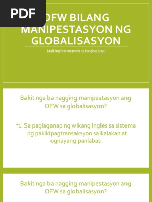 Ofw Bilang Manipestasyon Ng Globalisasyon Pdf
