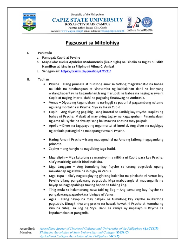 Pagsusuri Sa Mitolohiyang Cupid At Psyche Ni Lucius Apuleius Madaurensis Pdf